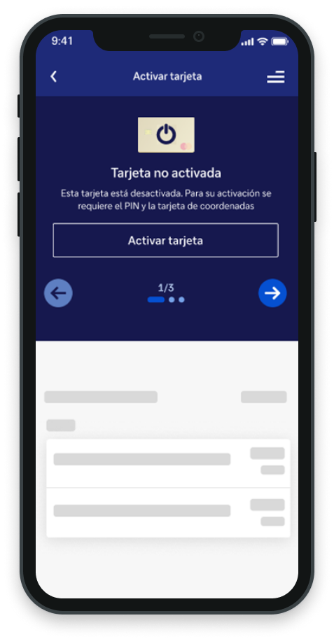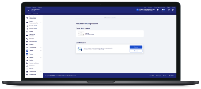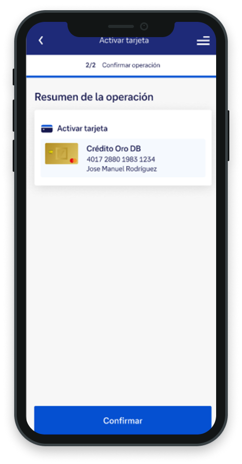 Entre en su App Deutsche Bank España y seleccione la opción “Tarjetas” del menú principal y a continuación elija la tarjeta que quiere activar.