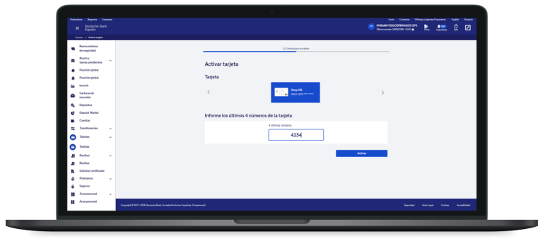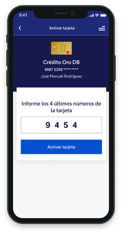 Informe de los cuatro últimos números de la tarjeta y pulse en “Activar tarjeta”.