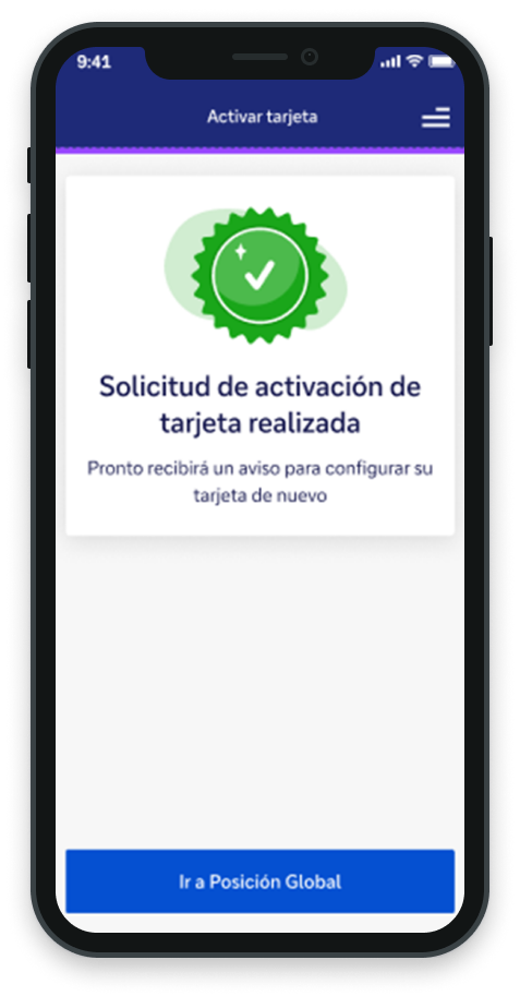 Si la operación se ha realizado correctamente, le aparece un mensaje de confirmación de que la tarjeta está activada.