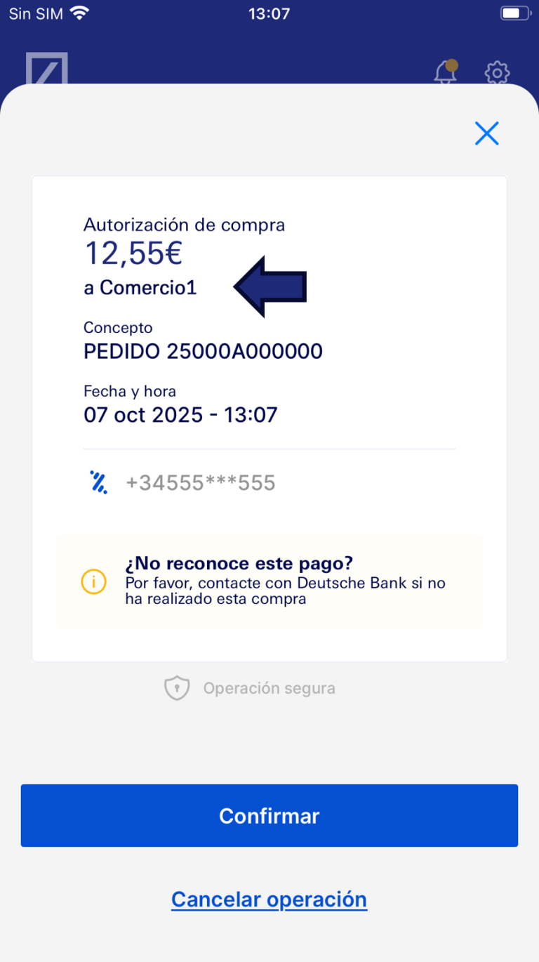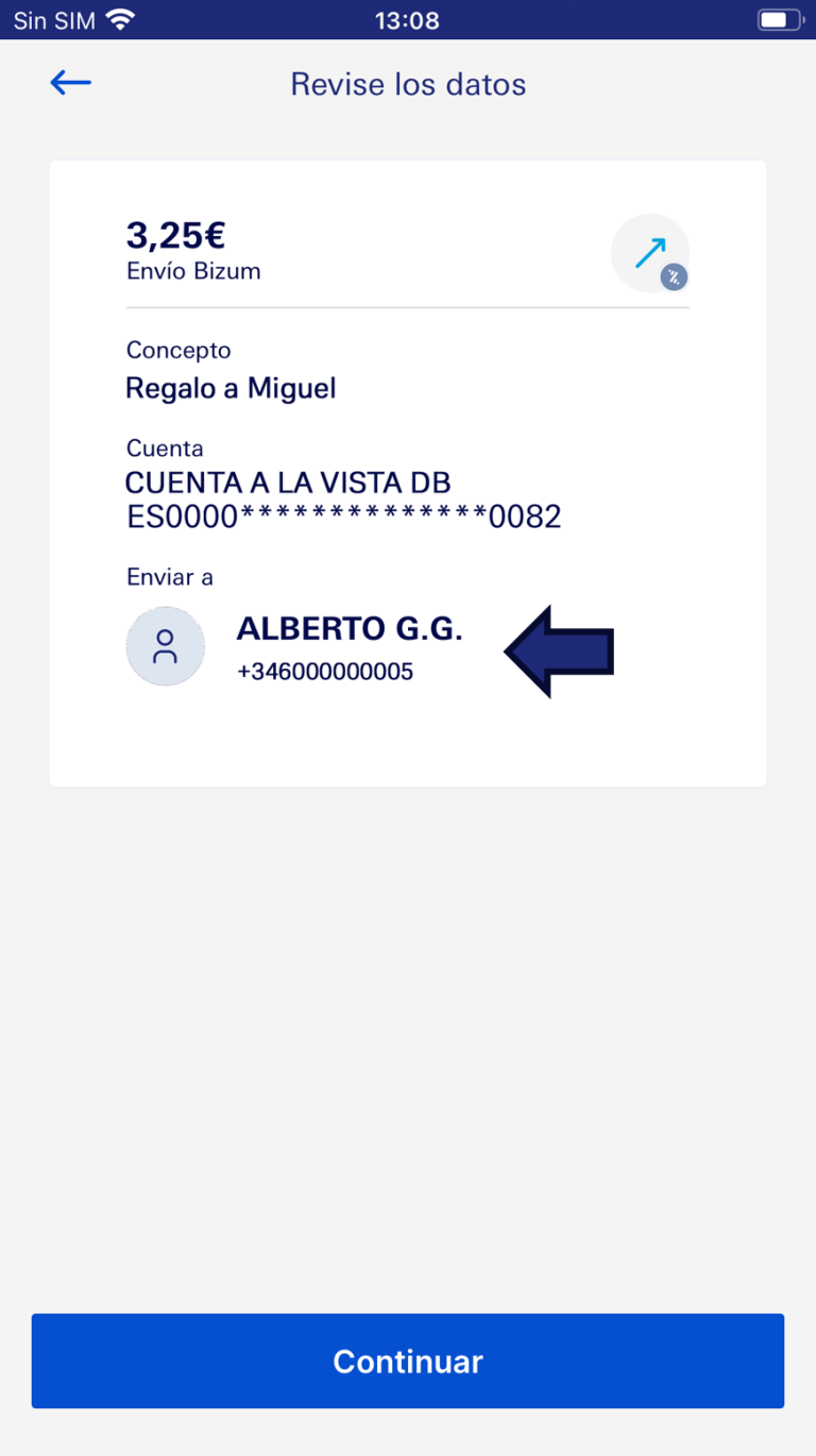 Continúe con el pago si está seguro de la identidad del beneficiario.