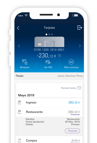Consulte en cualquier oficina cuál sería la fecha de vencimiento de la última cuota e intereses a abonar hasta liquidar el crédito dispuesto con su tarjeta, así como el importe de la cuota elegida. También puede visitar el simulador del Banco de España para efectuar su simulación accediendo a través del siguiente link: https://app.bde.es/asb_www/es/vencimiento.html#/principalVencimiento